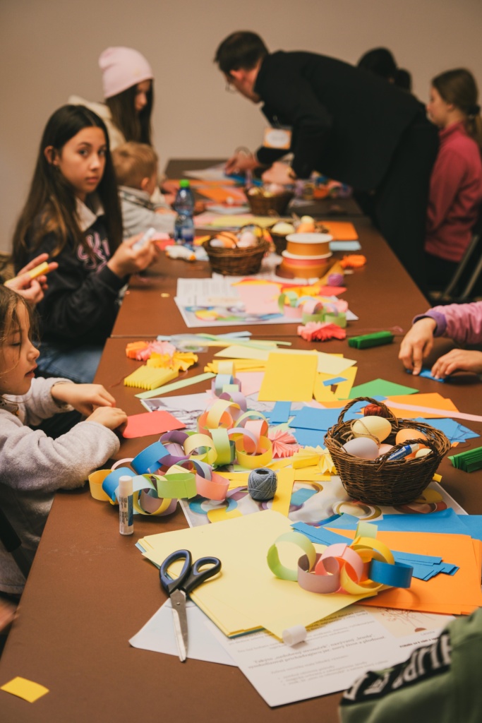 Veľkonočné zvyky si návštevníci mohli vyskúšať aj na rodinnom workshope výroby lesoly. Táto tradičná jarná ozdoba symbolizuje prebúdzanie prírody, nový život a príchod jari. Lesola, zdobená farebnými stuhami, kvetmi či vajíčkami, bola kedysi neodmysliteľnou súčasťou veľkonočných osláv a jej tvorba spájala celú komunitu. Na konci dňa žiarila všetkými farbami a stala sa krásnym symbolom spoločnej tvorby, radosti a pokračovania tradícií.